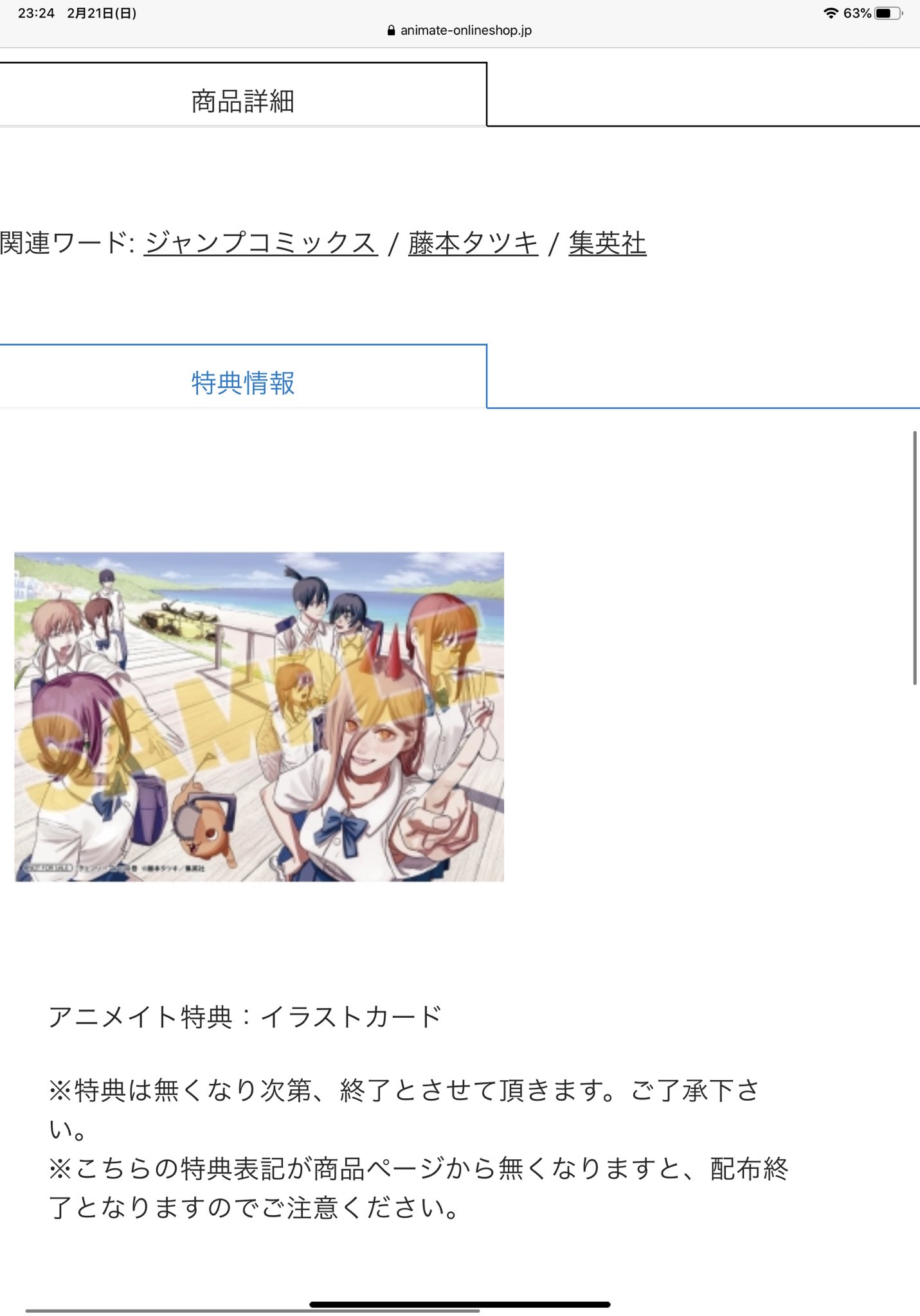 アニメイトのチェンソーマン11巻特典、イラストカード配布がきまりましたね♪